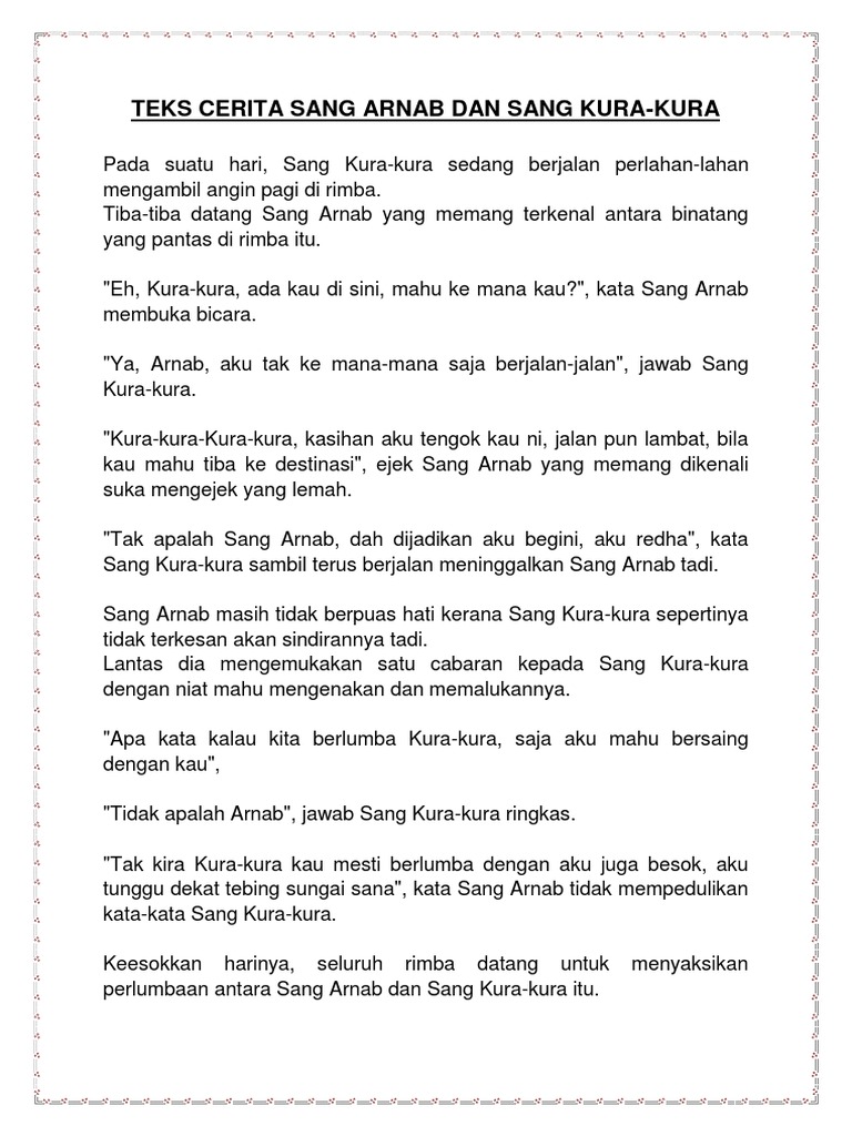 2.saya berlari dengan cepat kerana kaki saya panjang. Pada artikel berikut berikut kami telah merangkum kumpulan primbon, firasat. Kesimpulan dari cerita ini menunjukkan bahawa usaha itu tangga kejayaan. Añadir a mis cuadernos (0) añadir a google classroom añadir a microsoft teams. Dalam cerita tersebut, arnab tetap kalah walaupun.
