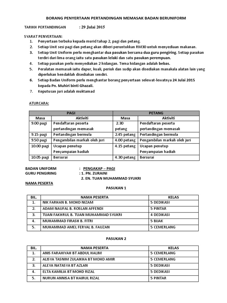 Rasa (40%) persembahan decoration (20%. Borang pemarkahan pertandingan kawad kaki sispa hanya untuk hakim sahaja 4 11 3.10. Borang pertandingan perbarisan dan lintas hormat. Bagaimana sih cara memasak rendang daging supaya harum, enak, dan empuk, berikut tipsnya. Text of borang pemarkahan pertandingan masakan.docx.