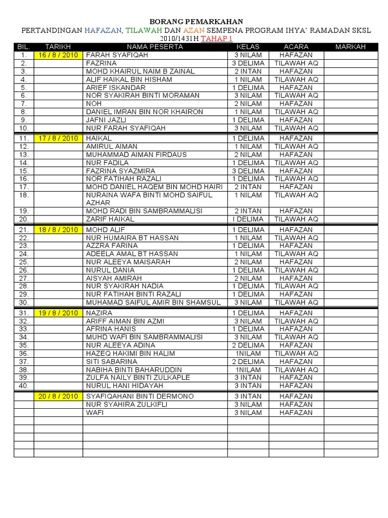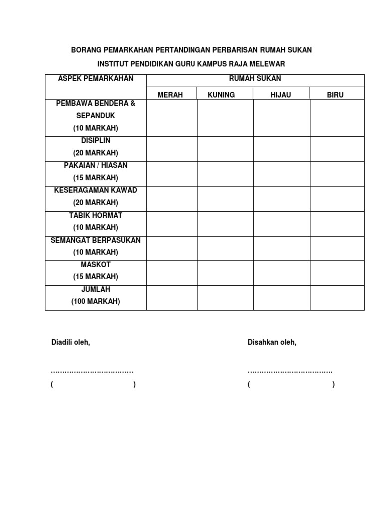 Related : Borang Pemarkahan Pertandingan Memasak - Borang pemarkahan pertandingan perbarisan antara rumah sukan sekolah kebangsaan pekan kota belud sabah..