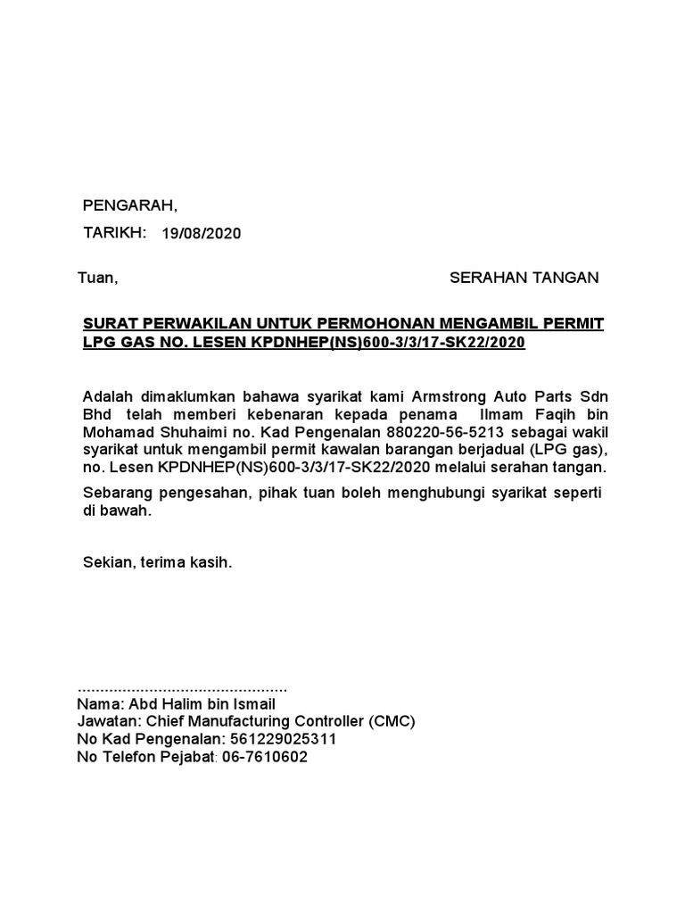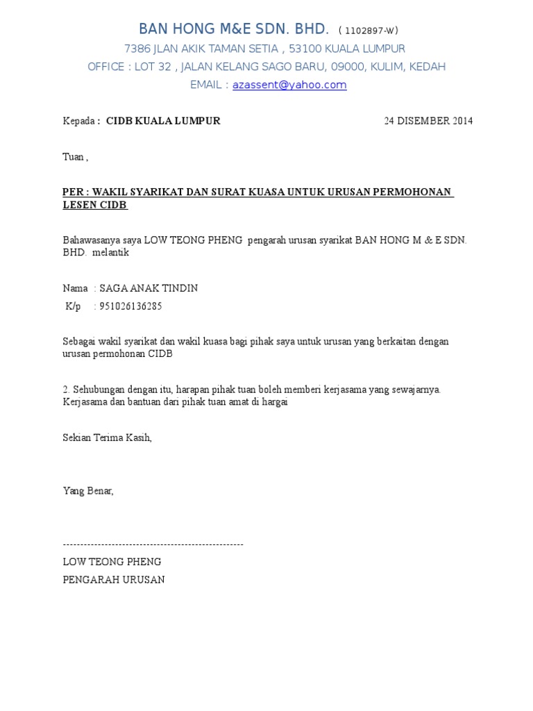 We provide image contoh surat wakil kuasa lhdn is similar, because our website concentrate on this category, users can find their way easily and we show a simple theme to search for images that allow a consumer to search, if your pictures are on our website and want to complain, you can file a complaint. Begitupun juga dibawah ini, ada contoh dari surat kuasa khusus yang semoga bisa menjadi bahan panduan bagi anda yang membutuhkannya. Pahami persyaratan membuat surat kuasa berdasarkan contoh surat kuasa di bawah ini. Salinan kad pengenalan wakil syarikat. Bila anda ingin mendownload contoh surat kuasa dalam format doc silahkan langusng klik yang telah tersedia dibawah ini.