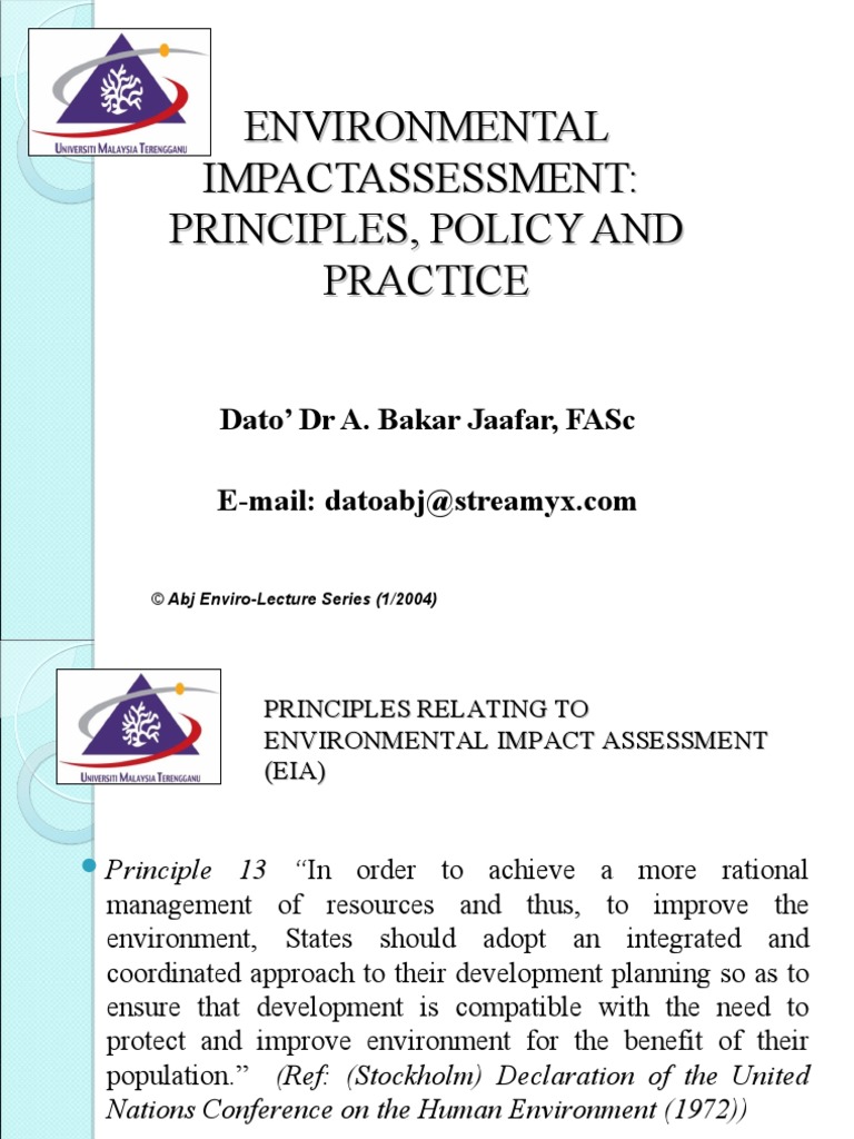 Environmental impact assessment ( eia ) is a process that requires developers to follow in order to be granted permission for a development and was foremost introduced in european union ( eu ) in 1985 ( glasson, 1999 ). The eia directive has been identified as a potential instrument. Let us know what's wrong with this preview of environmental impact assessment guidelines for industrial projects by malaysia. Development projects in the past were undertaken without any consideration to their environmental consequences. Ea environmental assessment eia environmental impact assessment eis environmental environmental health impact assessment (ehia).