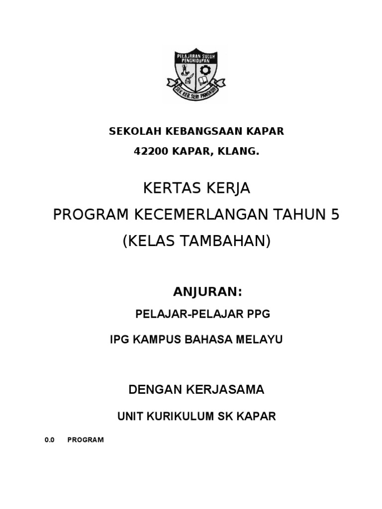 Kertas cadangan kelas kecemerlangan sabtu, tahun4, 5, & 6, 2002. Kertas kerja cadangan lawatan sambil belajar. Share & embed kertas kerja kelas tambahan 2016 please copy and paste this embed script to where you want to embed. Contoh, buku kerja bm 40 unit diletakkan di kelas 1a, buku kerja matematik 40 unit diletakkan di kelas 1b, buku kerja bahasa inggeris 40 unit diletakkan di kelas 1c. Report kertas kerja kelas tambahan 2016 please fill this form, we will try to respond as soon as possible.