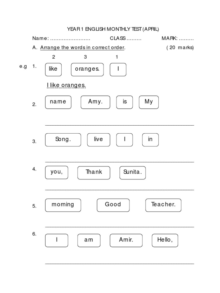 English Year 3 Monthly Test / English Year 4 Monthly Test August / English year 3 final year exam (paper 2) paper 2 (1 hour 15 min) sk bukit tadom (a) section a match the numbers with the correct words.. With our free english level test, you'll get an understanding of your knowledge of english grammar and find out where you need every year we help thousands of students reach their english language goals. Then just take this test, and start from there. Online english level test with 50 vocabulary and grammar questions to assess general language level in our short online level test is designed to help you choose the right ipass course according to your current level of english. Get our monthly newsletter for the latest ipass news & special offers! Text of english year 3 monthly test.docx.